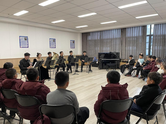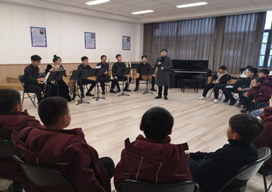 2021年12月17日下午,音乐学院团总支书记李海带领学生会走进新华公学开展“音乐课堂”进校园活动。