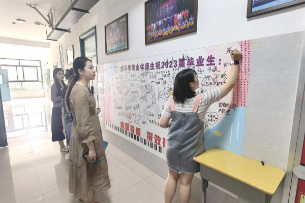 音乐学院高度重视本次2023届毕业生返校离校工作,围绕立德树人根本任务,将“一切为了学生”的宗旨贯彻工作始终。音乐学院精心布置了签名墙,让毕业生签名、合影留恋,见证成长时光。音乐学院党总支开展了毕业生党员教育座谈会,组织全体毕业生党员重温入党誓词,深入开展学习贯彻习近平新时代中国特色社会主义思想主题教育,进一步强化理想信念的引导。各毕业班辅导员组织开展了主题为“感恩母校,报效祖国”班会,勉励同学们不忘初心,勇毅前行,组织完成毕业生实习材料收集、党团组织关系转接等工作,引导毕业生文明离校。