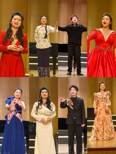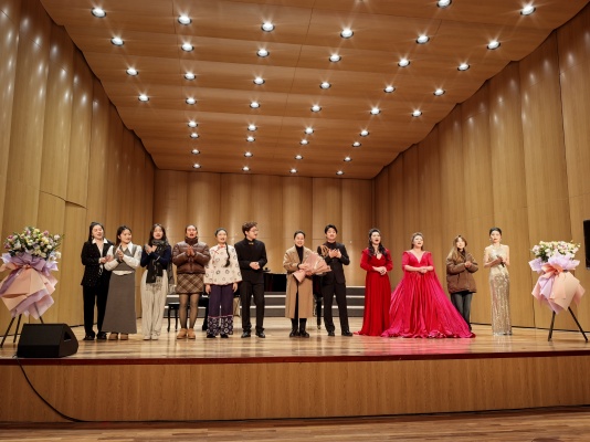 音乐会的节目丰富多彩,涵盖了民族歌曲、古典诗词和民族歌剧选段。学生们演唱了多首具有地域特色的民族歌曲,如贵州仡佬族民歌《情姐下河洗衣裳》、陕北民歌《小桃红》等,展现了不同民族文化的独特魅力。古典诗词部分,学生们用歌声诠释了《越人歌》《苏小小》和《江城子》等经典作品,传递出诗词中的意境与情感。民族歌剧选段如《来生来世把你爱》《抬头仰望夜黑的天》等,赢得了观众的热烈掌声。童惠老师与学生们共同演唱了《我的情歌》,深情歌颂师生情谊,现场气氛感人至深。