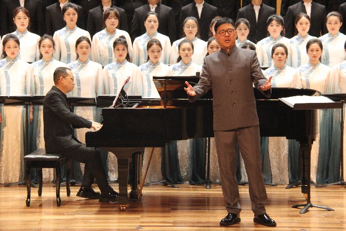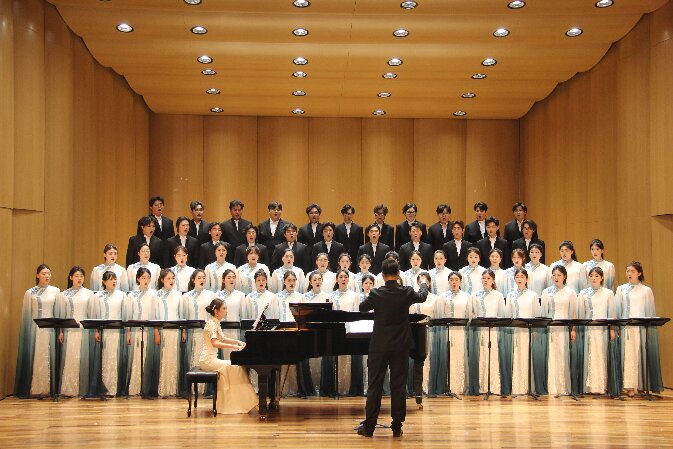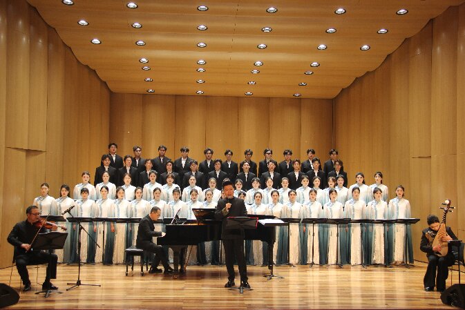 为纪念中国人民抗日战争暨世界反法西斯战争胜利80周年,2025年6月18日,音乐学院《黄河大合唱》专场音乐会在音乐厅震撼奏响。合唱团在侯雨老师的指挥下深情演绎经典名作,带领观众穿越历史长河,感受中华民族不屈的抗战精神与磅礴力量。