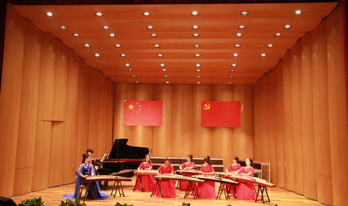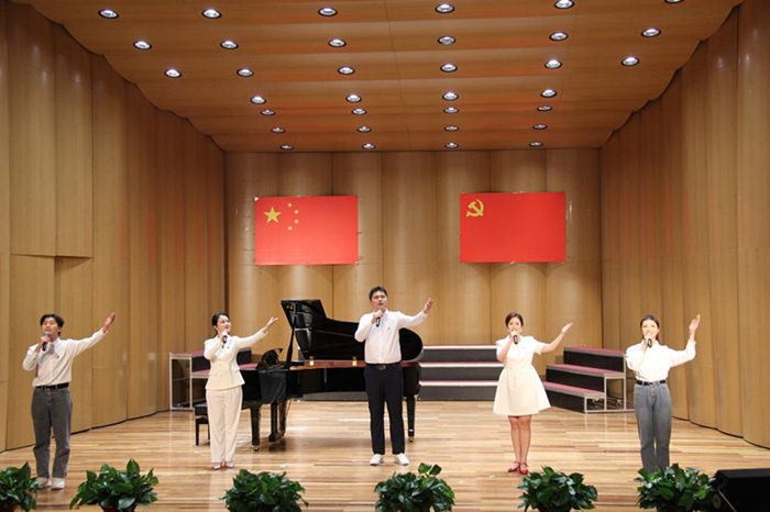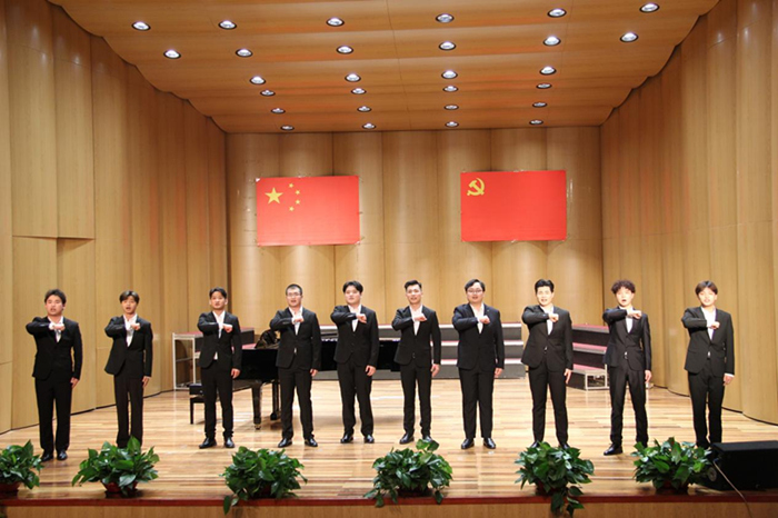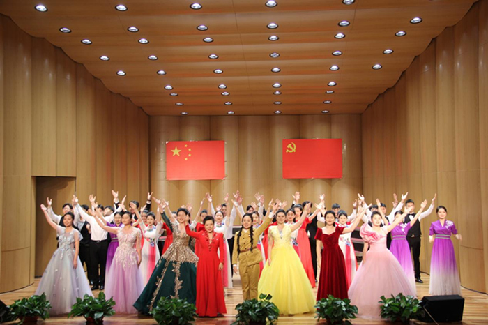古筝重奏《黄河》拉开艺术党课序幕,充分展现中华民族独有的气魄与豪情;《唱支山歌给党听》《红歌联唱》等一首首催人奋进的经典红歌讲述了中国共产党的奋斗历程和辉煌成就;《我的祖国》《国家》《复兴的力量》表达了对新时代美好未来的无限憧憬……艺术党课音乐会在马克思主义学院、音乐学院师生大合唱《领航》中落下帷幕。
