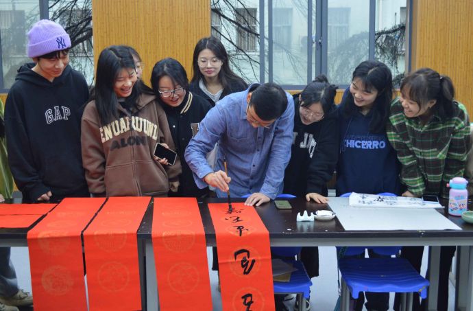 活动由青年书法家刘冲主讲。刘冲用故事、案例妙趣横生地介绍了对联的相关知识,带领与会人员鉴赏对联经典佳作。在体验和互动环节中,师生员工在专业教师和志愿者的指导下,书写了一幅幅寓意积极上向的大红春联和一个个“福”字。参与人员纷纷表示新年写春联送祝福活动是弘扬中华民族优秀传统文化,举办这样的活动很有意义。