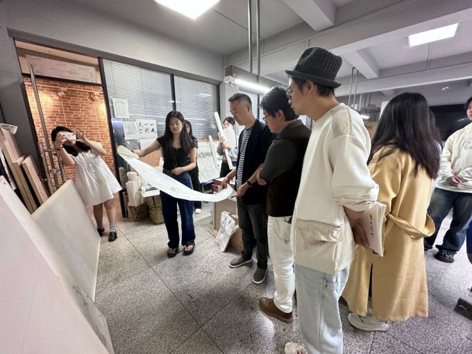 讲座结束后,周建祥教授参观了美术学院中国传统书画装裱与修复工作室和油画工作室,对同学们认真学习、刻苦钻研的精神给予充分肯定和赞扬。