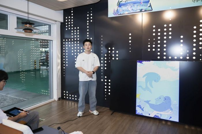 美术学院师生代表依据活动主题,现场创作了《长江微笑天使》《寻觅江豚》《江豚,我的朋友》等15项精美的数字绘画作品,充分展示了扎实的数字绘画技巧。