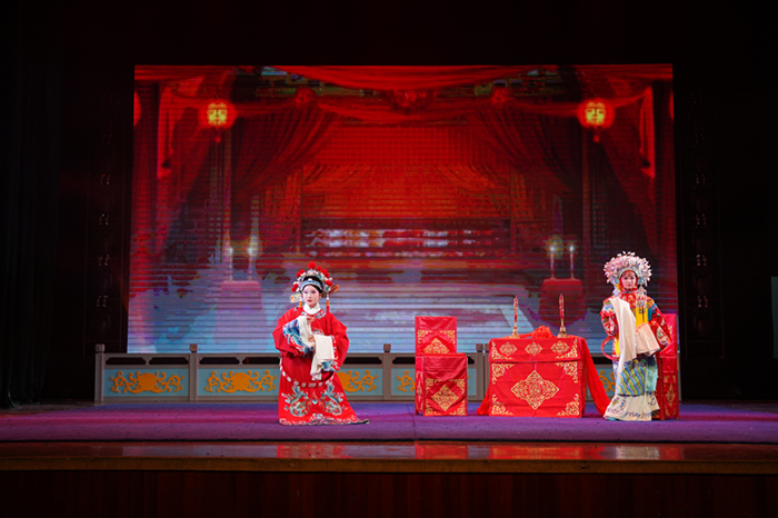 演出通过基本功展示、传统戏曲名作展演、戏曲音乐佳作演奏、红色戏曲经典演唱等内容,以文艺的形式让党的二十大精神“声”入师生之心,为在场观众奉献了一台戏曲盛宴。