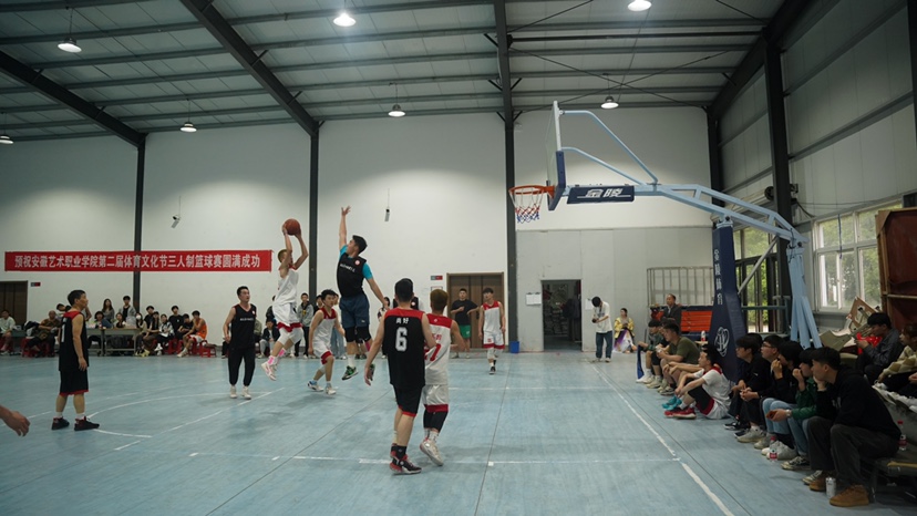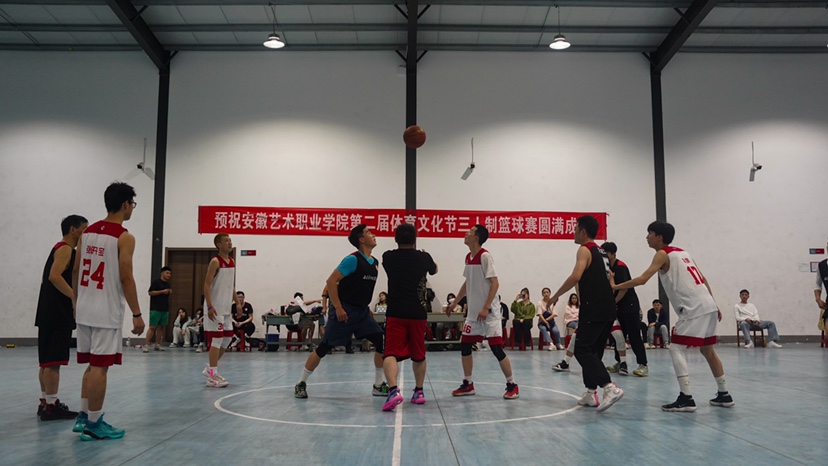 上半场一开场,两队都不甘示弱,教师队伍率先发起进攻,双方迅速展开激烈角逐。比赛过程中,队员们个个激情满怀,你争我夺,抢断、传球、进球,平日里三尺讲台上教书育人的老师瞬间成了“灌篮高手”,帅气潇洒的投篮赢得了观众们雷鸣般的掌声,同学们也不甘示弱,个个生龙活虎,全力以赴。每个队员都积极进攻、防守,为队友做掩护,在比分落后的情况下,毫不松懈,沉着应对,展现了安徽艺术职业学院学子永不言弃的精神。裁判员秉公执裁,严肃认真,从专业的角度出发判决好每一个球,保障了比赛的公证性、连续性和观赏性。