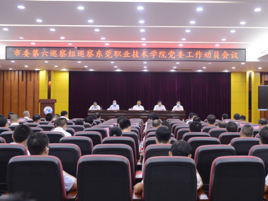 根据市委关于巡察工作的统一部署,2021年9月6日下午,市委第十四轮第六巡察组巡察东莞职业技术学院党委工作动员会在我校召开。会前,市委第六巡察组组长郭建明同志主持召开与学校党委领导班子成员的见面沟通会。会上,郭建明同志通报了巡察任务和工作安排,并就巡察工作提出要求。校党委书记朱益民同志主持会议并作表态发言。
