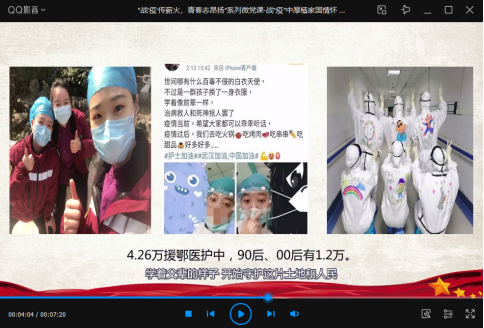 《“战疫传薪火青春志昂扬”系列微党课》由我校马克思主义学院策划录制。该系列微党课以初心、使命、担当、奋斗四个命题为切入口,形成一个系列三节微党课,号召广大青年应坚定价值观自信、坚守理想信念、厚植家国情怀,坚定不移跟党走。