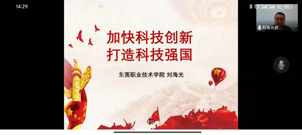 3月18日下午,副校长刘海光在线上向21级终端电子1、2班的同学讲授《加快科技创新 打造科技强国》,刘海光副校长通过对科技创新的内涵变化、加快科技创新的重大战略意义以及扎实推进科技强国战略三方面的讲述,以生动的案例和详实的数据解读了科技发展大趋势及当今世界重大科技进展和工程,梳理总结了我国科技事业的历史性变革与成就,分析了我国科技发展面临的任务与挑战。他鼓励同学们,要深入学习贯彻习近平总书记重要讲话精神,紧紧抓住历史机遇期,面向未来,承担起建设创新型国家、建设科技强国的历史责任。