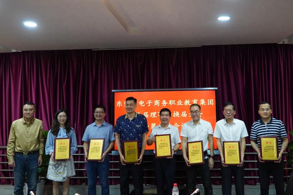 随着集团的发展和合作项目的开展,根据第二届理事单位的推选,2022年5月产生了新一届的电子商务职教集团。推选出东莞职业技术学院、东莞市电子商贸学校、广东名人投资集团、东莞市百达连新电子商务有限公司等7家理事长单位,京东集团、苏宁易购等42家副理事长单位和58家理事单位。我校副校长刘海光任执行理事长,我校商贸学院院长颜汉军、东莞市电子商贸学校校长吴强辉任秘书长。随后,刘海光副校长为第三届集团理事长单位授牌。
