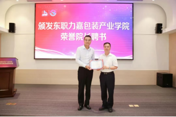 刘海光副校长表示,东职力嘉包装产业学院依托桥头镇“中国环保包装名镇”企业体系,无缝对接产业链,构建职业化人才培养立交桥,打造特色教育体系、创新人才引育机制,促进产业教育进一步优化升级,助力东莞在“双万”新赛道上跑出教育加速度。未来,学院将继续释放产业技术势能,深耕技术人才培养,以更开放更多元化的支持方式助力教育做实基础教学、拓宽技术视野、培育高质人才。随后,刘海光副校长为广东省印刷复制业协会顾问孔环基颁发东职力嘉包装产业学院荣誉院长聘书。