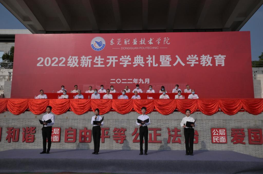 在雄壮庄严的国歌声中,典礼正式拉开帷幕。数字媒体学院冯婉怡同学作为新生代表上台发言。她表示,身为东职学子,我们要谨记东职“崇德、笃行、精技、创新”的校训,做到自尊、自爱、自律、自强。青年有梦想、有责任,国家就有希望。我们要以实际的行动,珍惜时光,努力学习,奋发图强,不负所托,打牢专业基础,服务社会发展。