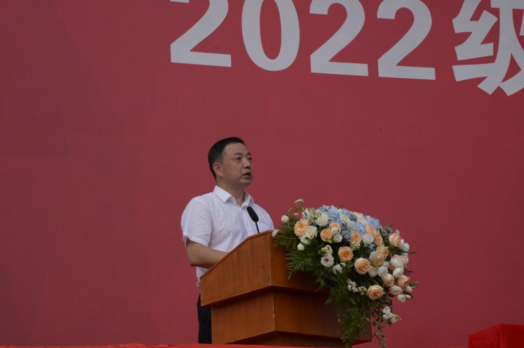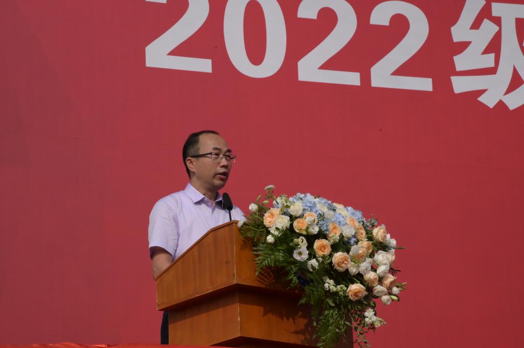 9月26日上午8点,我校在田径运动场举行2022级新生开学典礼。校党委书记朱益民,党委副书记、校长贺定修,党委副书记、纪委书记蔡东宝,党委委员、副校长杨云奇,副校长刘海光出席开学典礼,相关部门负责人,二级学院党总支专职副书记、全体辅导员、新生班主任及2022级全体新生参加典礼。校党委委员、副校长杨云奇主持典礼。