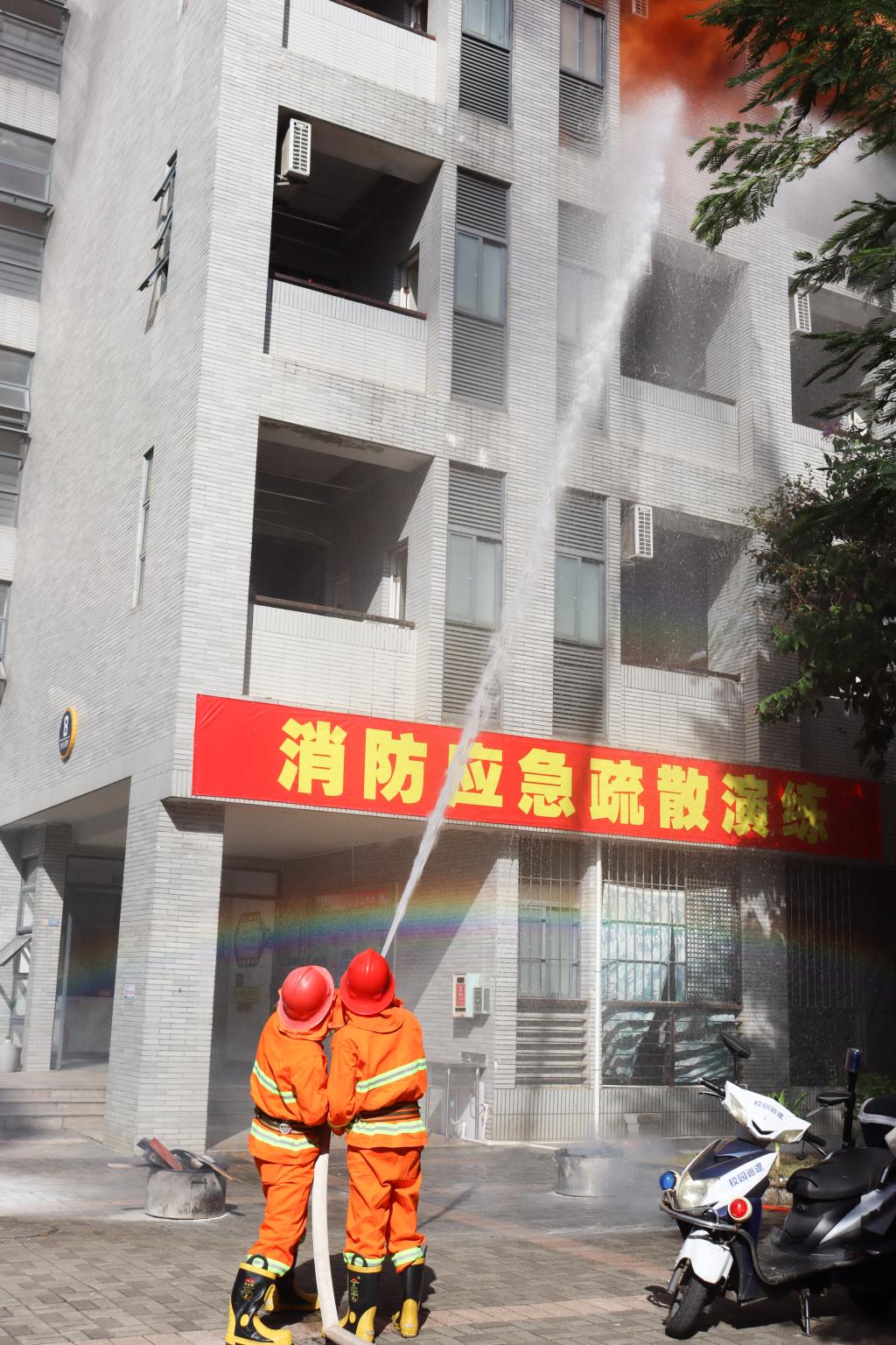 他就我校加强校园安全工作提出三点要求,一要进一步完善各宿舍疏散预案,定期开展消防演练。二要开展形式多样的教育实践活动,提升消防安全意识。三要加强消防安全隐患排查整治,采取有力预防措施。他号召全校师生积极关注消防、学习消防、参与消防,共同织牢校园消防安全之网,以安全稳定的校园环境迎接党的二十大胜利召开。