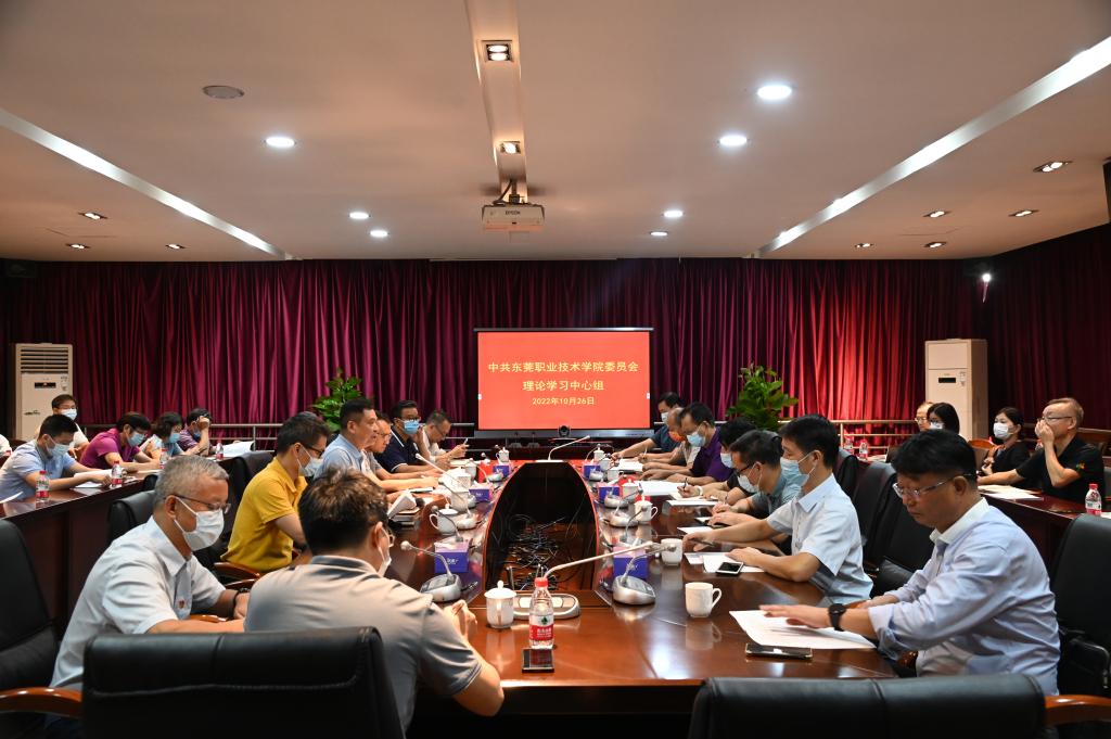 10月26日下午,我校在行政楼B415会议室召开党委理论学习中心组专题学习会,传达学习贯彻党的二十大精神。校党委书记朱益民主持会议。校领导、中层干部正职、党总支书记参加会议。