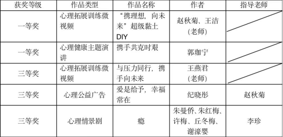 近日,广东省教育厅2022年“5.25”大学生心理健康月系列活动评奖活动揭晓,我校学工团队指导的参赛作品获得2个一等奖、3个三等奖的优异成绩。