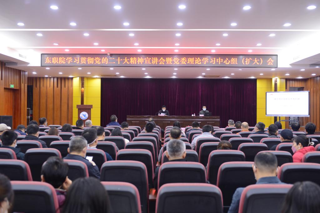 为深入学习宣传贯彻党的二十大精神,引导全校师生把思想和行动统一到党的二十大精神上来,12月14日下午,我校举行学习贯彻党的二十大精神宣讲会暨党委理论学习中心组(扩大)会,会议邀请市委宣讲团成员,市委党校教育长王金豹教授作报告。校领导,党委委员,中层干部、马克思主义学院全体教师参加宣讲会。会议由党委书记朱益民主持。