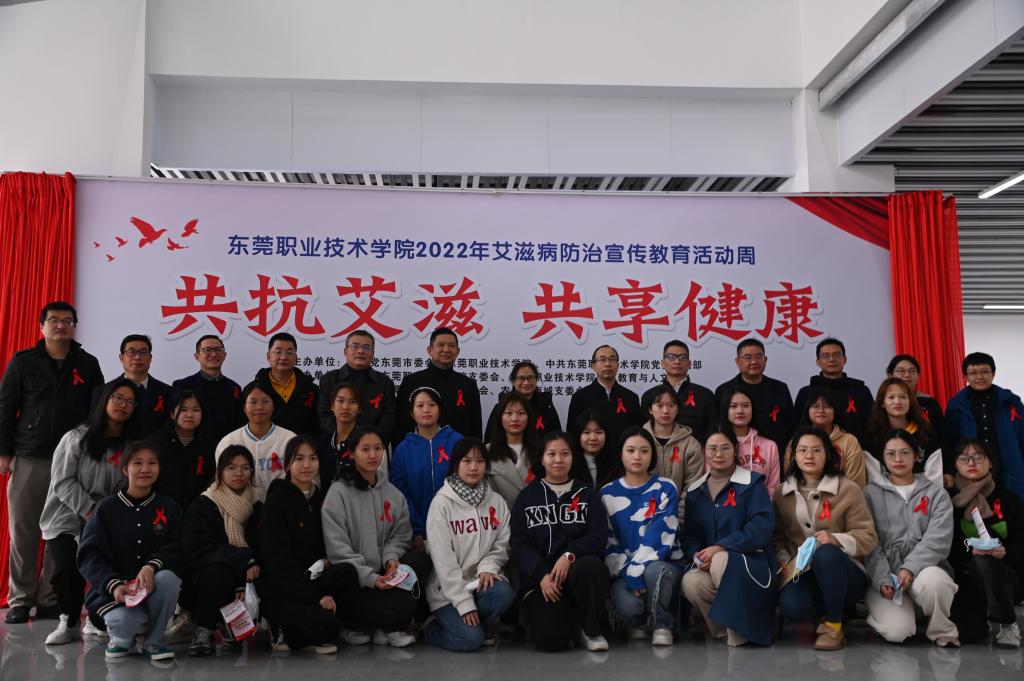 在第35个世界艾滋病日到来之际,12月15日上午,由农工民主党东莞市委员会和东莞职业技术学院主办,农工民主党东莞职业技术学院支部委员会及东莞职业技术学院学前教育与人文学院承办,农工民主党南城支部委员会协办的世界艾滋病日宣传展活动在我校人文艺术大楼一楼展厅举行。东莞市政协副主席、中国农工民主党东莞市委会主委赖少瑜,东莞职业技术学院党委书记朱益民,东莞职业技术学院党委副书记、校长贺定修,东莞职业技术学院党委副书记、纪委书记蔡东宝以及农工民主党市委会委员等参加活动。