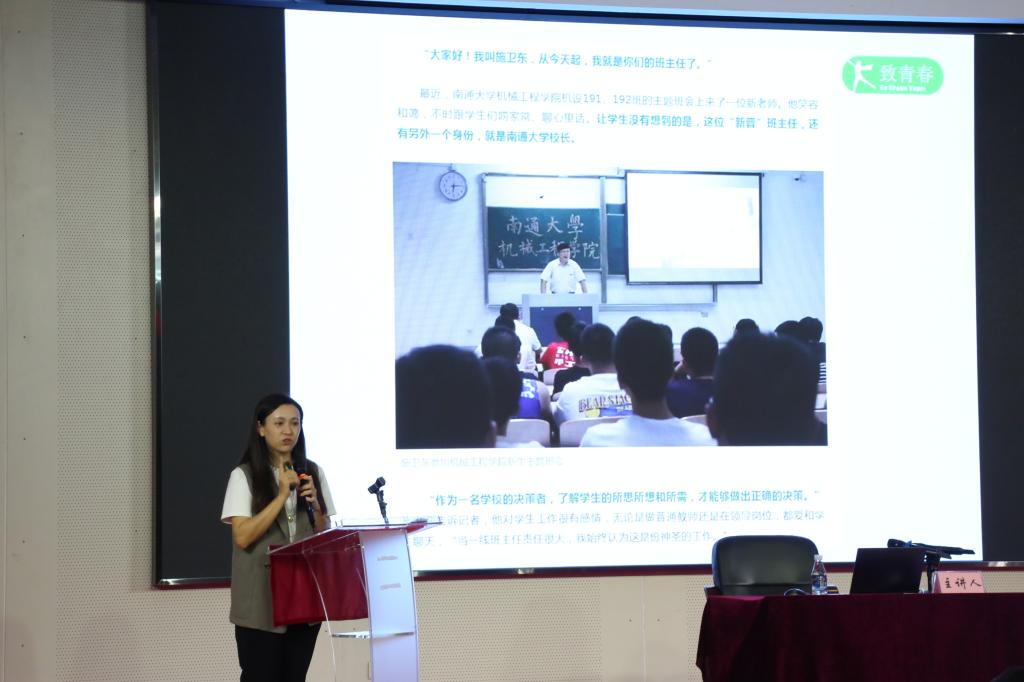 专题讲座由华南师范大学地理科学学院党委副书记、纪委书记何雪梅主讲。何书记从“为什么需要班主任?”“这是一群怎样的大学生?”“班主任什么样要做什么?”“班主任工作如何开展”四个问题切入,用亲身经历的一些生动鲜活的案例进行讲授,着重强调班主任老师对学生个人成长所起到的重要作用,通过分享她多次与学生面谈的经历,呼吁班主任老师们要努力成为同学们亲切的“知心朋友”与“人生导师”,为他们创建一个温暖且舒心的校园氛围。何书记与班主任们现场交流互动,气氛踊跃,效果明显。