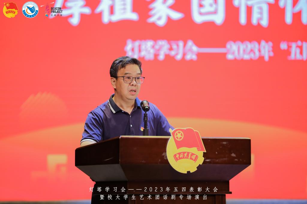 5月10日下午,灯塔学习会——2023年“五四”表彰大会暨校大学生艺术团话剧专场演出在修远楼梦想剧场举行,校党委委员、宣传部部长杨洋,机关党总支书记李琦,校党委组织部副部长、人事处副处长王军,各学院党总支副书记出席,全体教师团干、校青马学员及获奖师生代表共300余人参加。