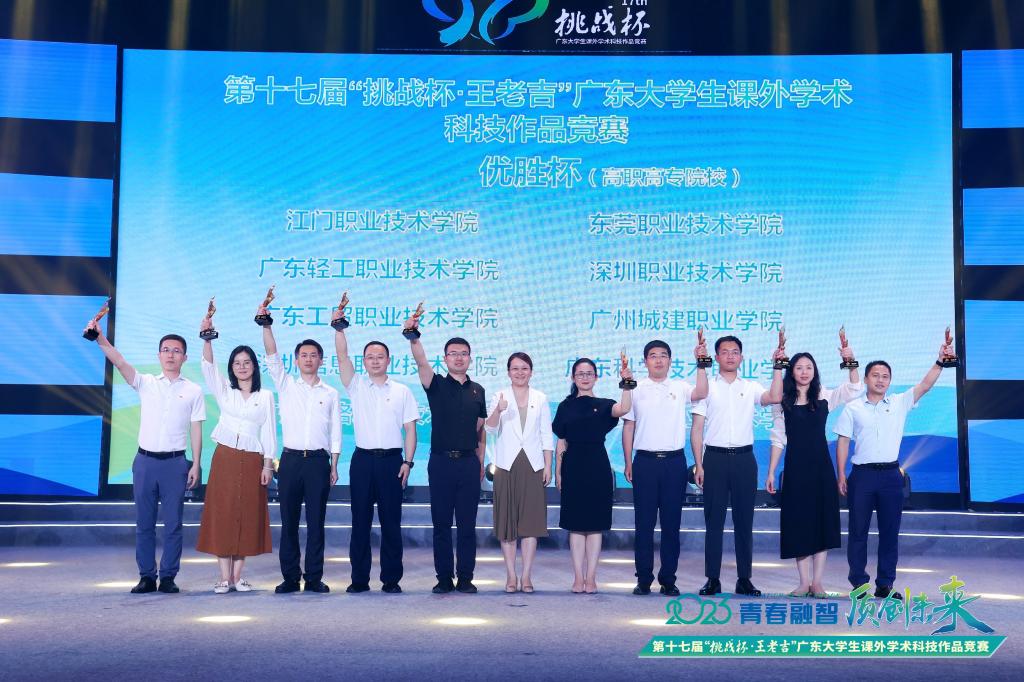2023年5月26日-5月28日,由团省委、省教育厅、省科技厅、省科协、省社会科学院及省学联共同主办,中山大学承办的第十七届“挑战杯”广东大学生课外学术科技作品竞赛(以下简称“大挑”)终审决赛在广州中山大学南校园顺利举行。此次竞赛我校共推报15件作品,经过各二级学院参赛师生和相关职能部门的共同努力,最终获特等奖2项、一等奖6项、二等奖3项、三等奖4项。同时,以全省高职院校总成绩第2名斩获大赛“优胜杯”。