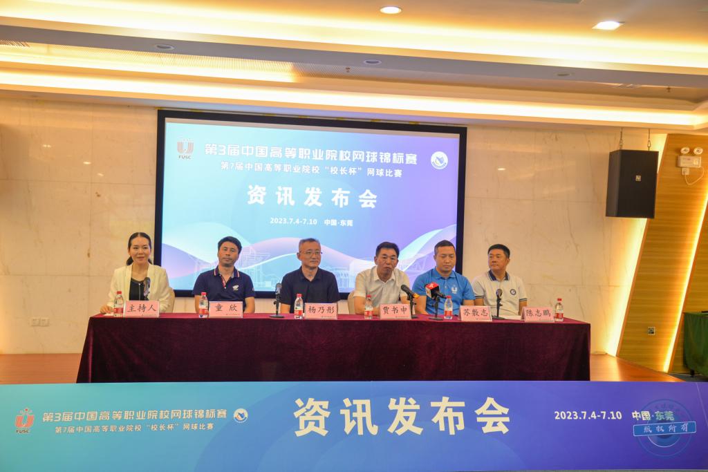 中国大学生体育协会职业学校体育工作委员会秘书长贾书申,第3届中国高等职业院校网球锦标赛、第7届中国高等职业院校“校长杯”网球比赛裁判长苏敷志,东莞职业技术学院体育学院院长杨乃彤,东莞市网球协会会长陈志鹏,中科院高能物理所研究员、松山湖网球协会副会长童欣出席本次发布会。