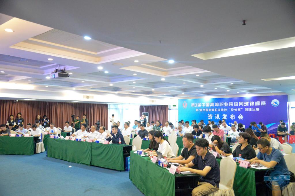 7月5日下午,第3届中国高等职业院校网球锦标赛、第7届中国高等职业院校“校长杯”网球比赛资讯发布会在我校图书馆展示交流中心报告厅举行。中国大学生体育协会职业教育学校体育工作委员会秘书长贾书申,我校党委书记朱益民,校党委副书记、校长贺定修,党委副书记、纪委书记蔡东宝,党委委员、副校长杨云奇,副校长刘海光等嘉宾出席资讯发布会。