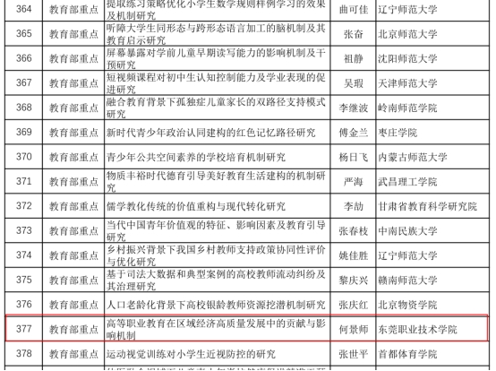 2023年8月28日,全国教育科学规划领导小组办公室公布了全国教育科学“十四五”规划2023年度课题立项名单,我校商贸学院何景师副教授主持的《高等职业教育在区域经济高质量发展中的贡献与影响机制》项目立项为2023年全国教育科学规划课题教育部重点课题,实现了我校全国教育科学规划课题“零”突破。2023全国教育科学规划课题共立项课题524项,其中国家社科基金教育学项目350项,教育部课题174项,其中,职业院校只立项课题18项。