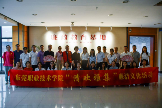 活动开始,参会人员一同跟随讲解员参观清风园,通过“捐屋助学”、“却金亭碑”、“清风成林”等故事用活东莞本土红色资源,弘扬中华优秀传统文化,涵养学校新风正气。随后,参会人员一起参观了我校廉政教育基地,跟随讲解员参观宣传教育区、党内法规区、典型案例区、检讨忏悔区、心得体会区、整改回访区6个区域,现场上演了一堂生动的廉政教育课。