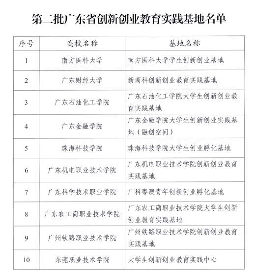 我校大学生创新创业教育实践中心在第二批广东省创新创业教育实践基地建设工作中通过省厅审核考察,获评省创新创业教育实践基地。本次共评选10个省级实践基地,其中高职院校5所。