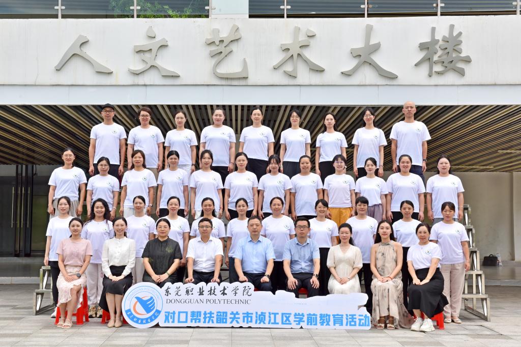 为落实广东省全口径全方位融入式帮扶粤东粤西粤北地区基础教育高质量发展实施办法要求,帮助韶关市浈江区学前教育实现由“输血”到“造血”的转变,我校于7月7日至7月11日举办对口帮扶韶关市浈江区“学前教育培训师培训班”。7月8日下午,开班仪式在我校人文艺术大楼909培训室举行。我校党委委员、副校长杨云奇,学校党委组织部部长、人事处处长吴显嵘,韶关市浈江区教育局党组成员、浈江区教师发展中心主任黄雄华,副主任邓莹源以及我校教师代表、东莞市学前教育研训与评估中心理事代表和培训班全体学员参加了开班仪式。