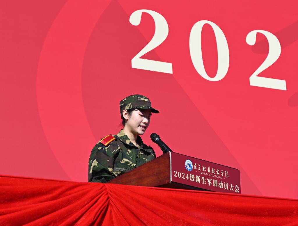 庄严的升旗仪式结束后,新生代表与教官代表分别发言。陈嘉靖同学表示要严格遵守军训纪律,以军人的标准严格要求自己。要努力学习军事技能,不断提高自己的身体素质和军事素养。要培养坚韧不拔的意志品质,保持良好的精神风貌。孙德文教官表示将严格要求学生,确保此次军训活动标准严格、质效明显。