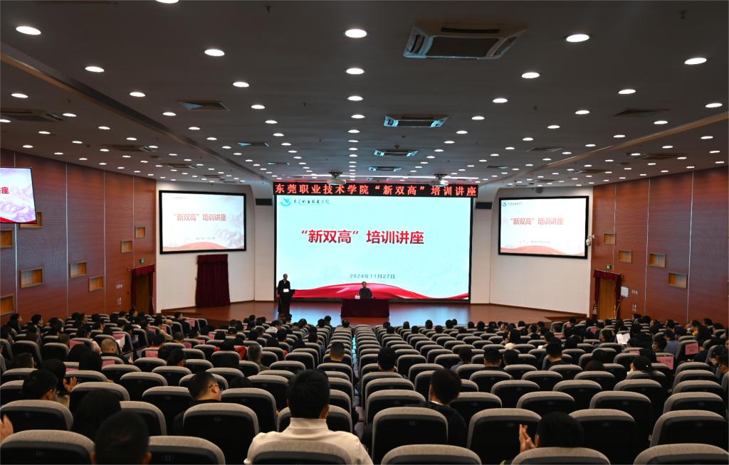 为加深对“新双高”“办学能力高水平、产教融合高质量”的认识,梳理“双高”申报及建设工作的思路,形成群策群力共建“新双高”的良好氛围,11月27日上午,我校邀请中国职业技术教育学会原副会长、二级教授丁金昌在培训楼报告厅作“加快发展新质生产力背景下高质量申报高职院校‘新双高’建设计划的思考”的专题讲座。讲座由校党委副书记、校长贺定修主持,校党委委员、中层干部、行政教辅部门及二级学院教职工代表300余人聆听了报告。