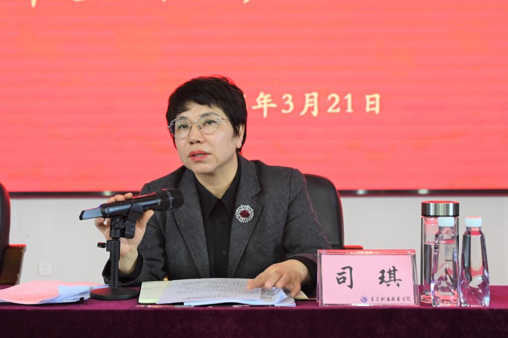 党委书记司琪作总结讲话。她强调,今年是学校以综合改革推进“建双高、办本科”的关键之年,要坚持以习近平新时代中国特色社会主义思想为指导,深入贯彻上级党委关于全面从严治党的部署要求,聚焦“五个深化”,推动全面从严治党向纵深发展、向基层延伸,为学校高质量发展提供坚强保障。她对做好今年全面从严治党工作提出了五点要求,一是要深化思政引领,坚决做到“两个维护”。二是要深化强基固本,以党建为抓手锻造过硬战斗堡垒。三是深化选育管用,激发干部队伍的活力动力。四是深化正风肃纪,厚植清正廉洁的校园生态。五是深化责任落实,认真履行“一岗双责”,把管党治党落到实处。