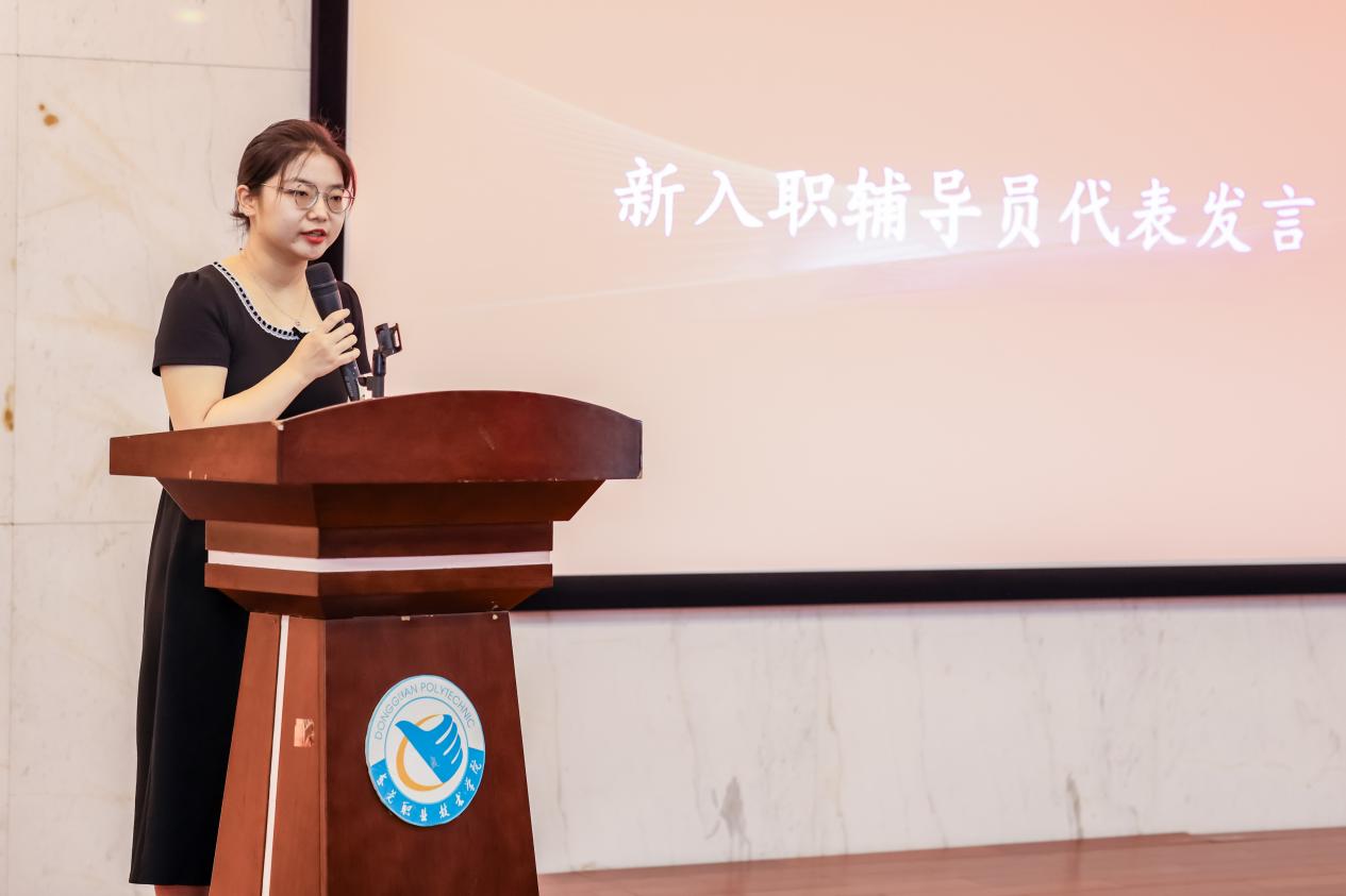 随后,9名新入职辅导员和各自的成长导师一一结对并献花。成长导师代表梁欢在发言中表示,将不辜负学校的信任,认真履行好成长导师的职责,携手新入职辅导员做青春路上永远年轻的点灯人。新入职辅导员代表徐俊表示,非常荣幸加入东职学工的大家庭,并将在辅导员岗位上履职尽责,做好学生思想的引路人和学生生活的贴心人。