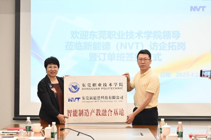 为全面贯彻党中央、国务院关于高校毕业生就业工作部署,深化学校产教融合,推动高质量就业,扎实推进学校高质量发展,4月22日上午,我校党委书记司琪带队赴东莞新能德科技有限公司(以下简称新能德)开展访企拓岗专项行动,签订联合培养订单班协议,举行智能制造产教融合基地揭牌仪式,党委委员、副校长杨云奇以及教务处、产教融合办、智能制造学院等负责人参加了活动。