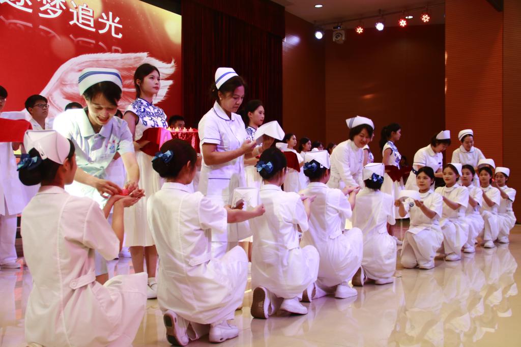 庄严的授帽及宣誓仪式将现场气氛推向了高潮。这是道滘校区延续多年的重要传统活动,承载着师生对南丁格尔精神的深切缅怀与传承,同时勉励各位护理专业的青年学子以青春诠释护理事业的温度,以行动践行“健康所系、性命相托”的誓言。