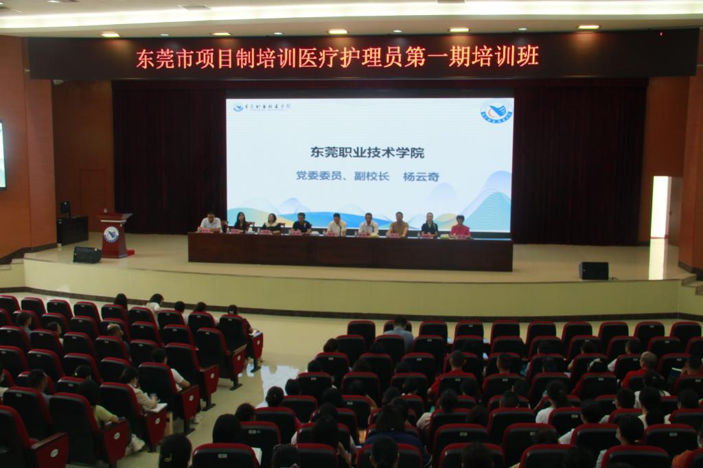 为提升医疗护理员的专业能力和综合素质,有效增加优质医疗免陪护服务供给,进一步改善患者就医体验,增强人民群众获得感。6月21日上午,东莞市项目制培训第一期医疗护理员培训班开班仪式在我校道滘校区举行。开班仪式上,东莞市卫生健康局三级调研员陈少基、东莞市人力资源和社会保障局四级调研员赵欣、我校党委委员、副校长杨云奇等相关单位领导嘉宾出席,开班仪式由我校卫生健康学院党总支书记、院长宋海燕主持。