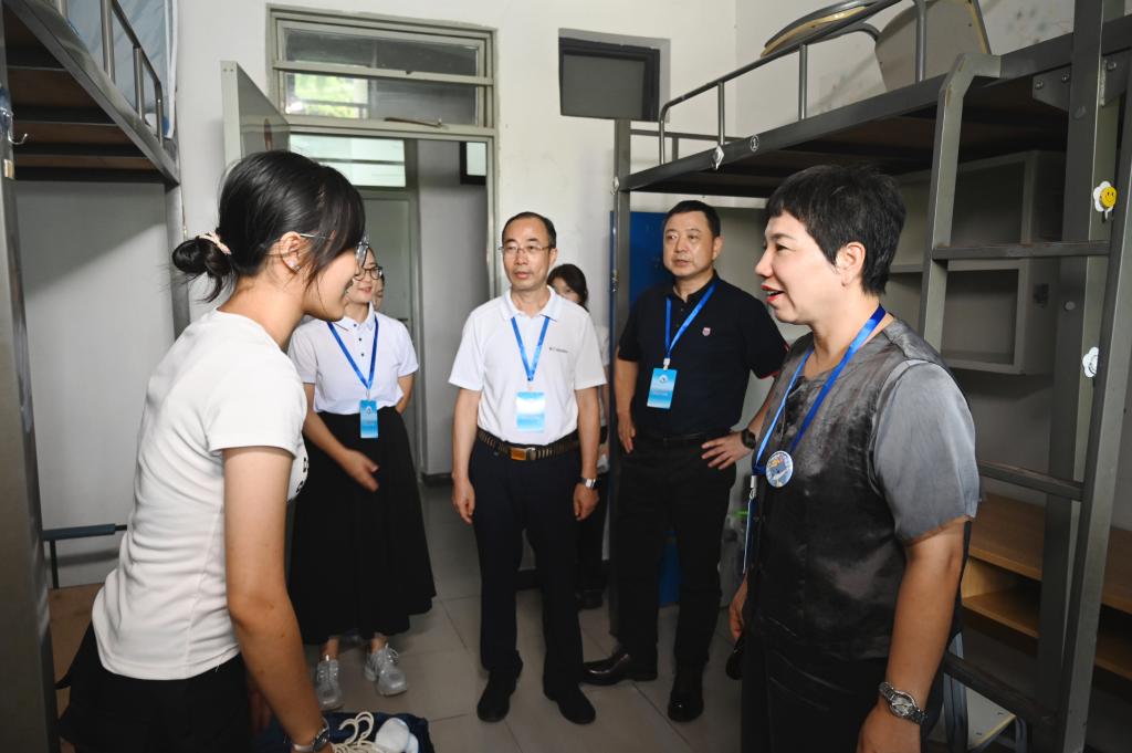 随后,校领导一行来到新生宿舍,看望已经入住的新生。走进宿舍,他们仔细查看宿舍设施配备情况,询问同学们对住宿条件的感受和需求,并叮嘱同学们正确树立集体意识,共同营造和谐的宿舍氛围。贺定修校长鼓励新生们要尽快适应大学生活,树立明确的学习目标,努力提升自己的综合素质。他表示,学校会全力以赴为学生提供良好的学习生活环境,助力学生成长成才。