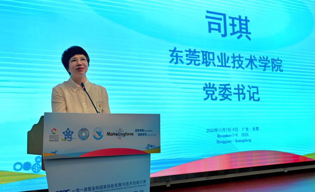 11月7日至9日,由金砖国家工商理事会中方理事会主办、东莞职业技术学院承办、商学院(筹)具体组织的2025“一带一路”暨金砖国家技能发展与技术创新大赛第二届数字营销实战竞赛赛项总决赛在我校成功举办。8日上午,大赛开幕式在东莞职业技术学院培训楼报告厅举行,开幕式由东莞职业技术学院商学院(筹)行政负责人周虹主持。校党委书记司琪,校党委副书记、纪委书记蔡东宝,金砖国家技能发展与技术创新大赛组委会执委会竞赛办公室二处处长何美连,珍岛信息技术(上海)股份有限公司院校事业部总经理李罡等领导和嘉宾出席开幕式。