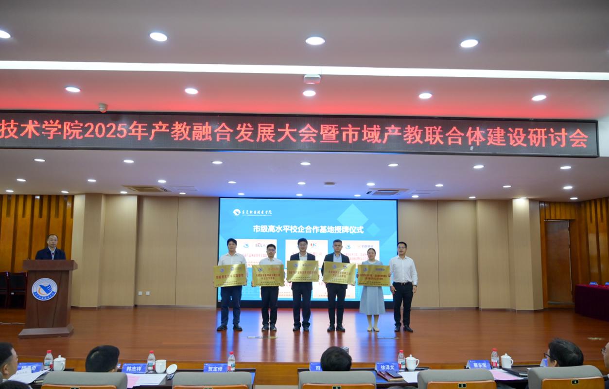 会上,产教融合办公室主任陈永刚系统汇报了学校产教融合的工作成果与未来规划。电子信息学院院长彭勇分享了服务智能终端产业的创新实践路径。企业代表东莞新能德科技有限公司李爱平高度评价了校企合作成效,表达了深化协同育人的决心。大会还举行了市级高水平校企合作基地授牌、产业学院授牌、企业捐赠及订单班签约等一系列仪式,标志着学校产教融合迈向项目落地、实质运行的新阶段。