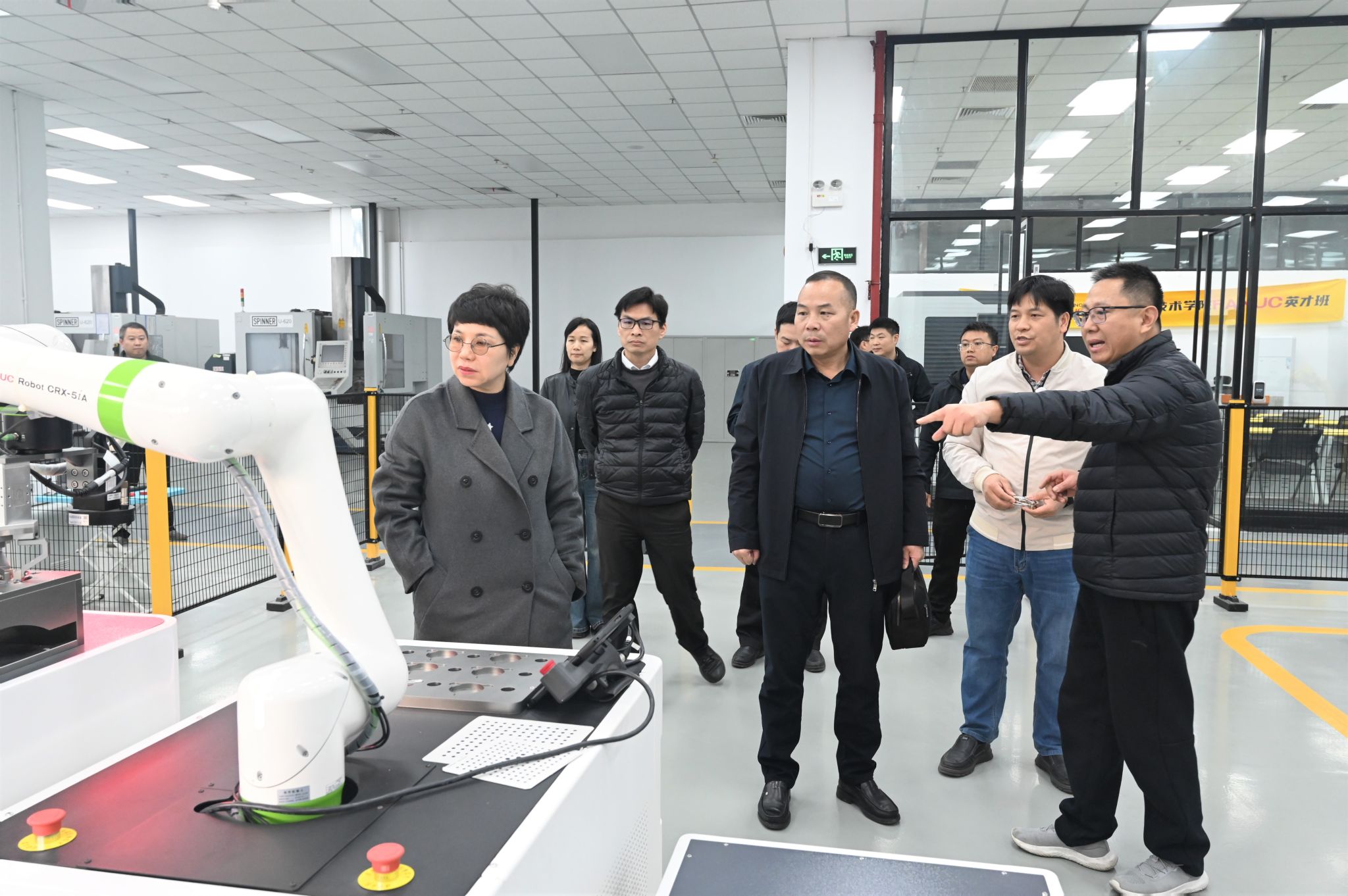 座谈会后,肖轩广书记一行在我校领导陪同下,实地参观了数字化智能制造工厂和清风园廉政教育基地。智能制造学院范四立、刘志伟两名老师详细介绍了数字化工厂“教学、实训、生产”一体化的建设模式与运行成效。蔡东宝副书记在清风园现场介绍了廉政教育基地建设理念和学校廉洁文化建设成果。