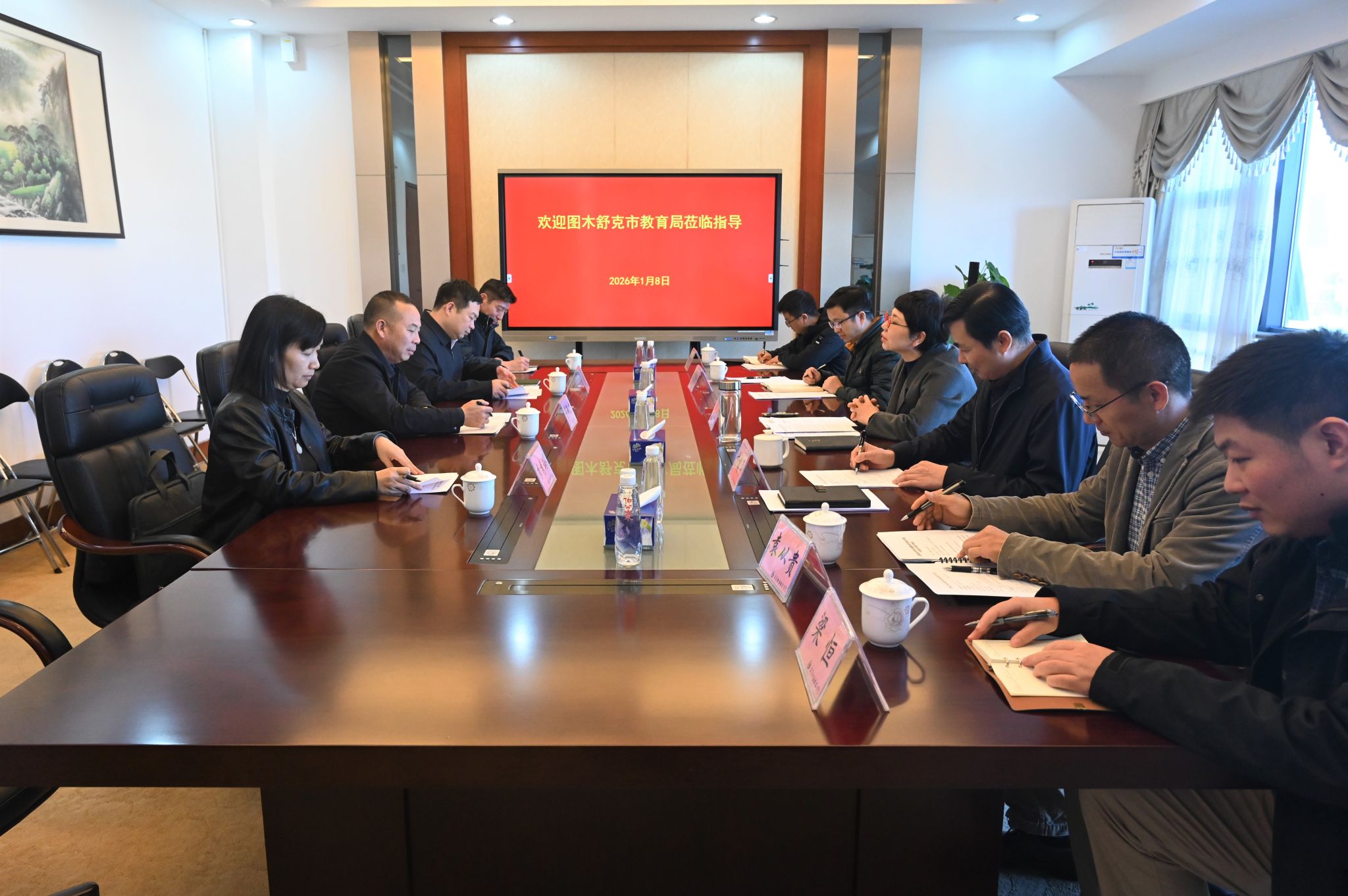 1月8日下午,图木舒克职业技术学院党委书记肖轩广一行莅临我校考察交流。学校党委书记司琪,党委副书记、纪委书记蔡东宝,副院长卞建勇及相关人员参加了接待交流活动。