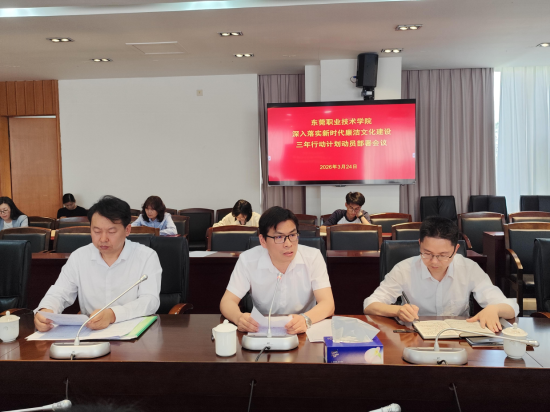 蔡东宝副书记就我校深入落实新时代廉洁文化建设三年行动计划作动员部署。他指出,廉洁文化建设是一体推进“三不腐”的基础性工程。过去三年,我校廉洁文化建设实现“一年一小步、三年一大步”的跨越式发展,2025年在教育部高校廉洁教育系列活动中入选作品数量位居全国高职院校第二。他以“三个转变”回望三年耕耘:工作机制从“单兵突进”向“协同作战”转变,文化阵地从“无形无影”向“有形有效”转变,教育效果从“入耳入眼”向“入脑入心”转变。“清风成林”“廉心筑岛”等廉洁文化实践成果,标志着我校廉洁教育从说教式向参与式的深刻变革。