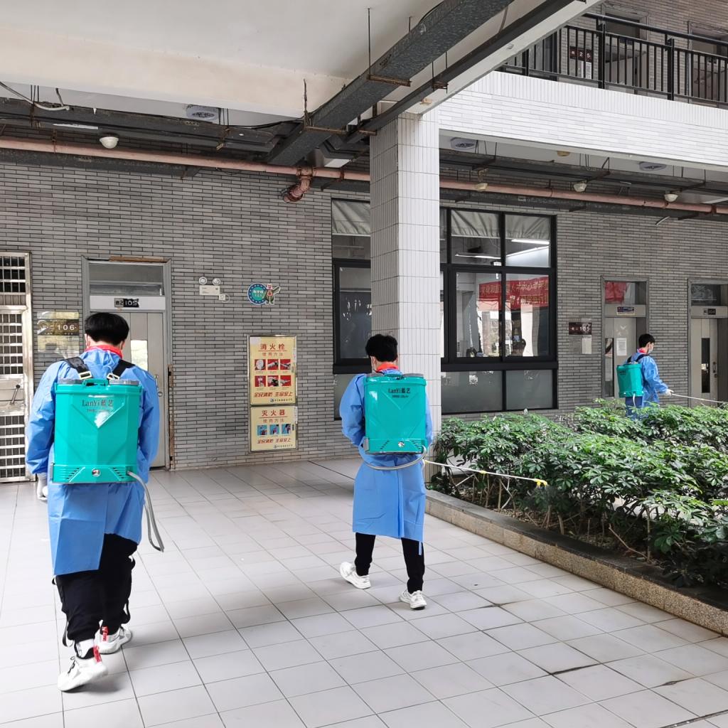 学生志愿者开展楼宇消杀
