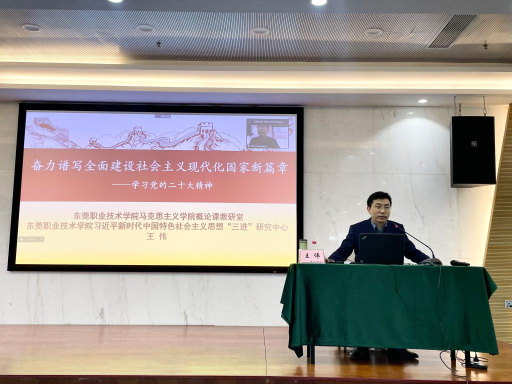 为进一步深入学习贯彻党的二十大精神,切实把全馆人员的思想统一到党的二十大精神上来,根据《东莞职业技术学院开展党的二十大精神宣讲工作的实施方案》,12月9日上午,图书馆在展示交流中心会议室召开学习贯彻党的二十大精神宣讲会。会议邀请学校党的二十大精神宣讲团成员马克思主义学院王伟博士作专题报告,图书馆全体工作人员参加会议。