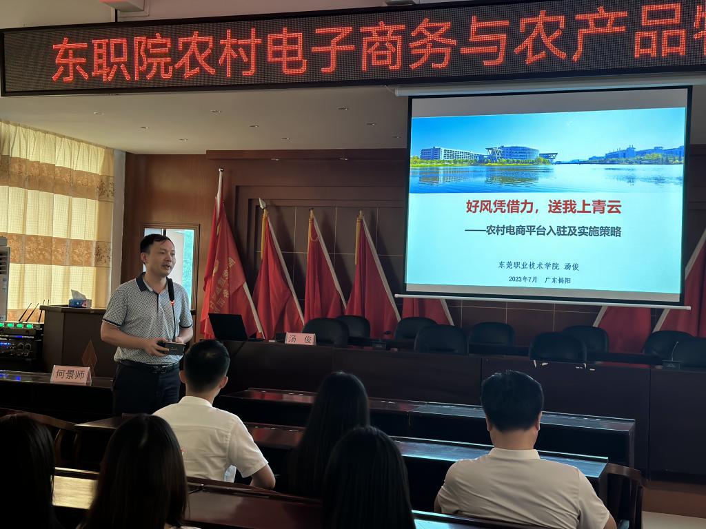 此次活动在东莞对口帮扶揭阳指挥部(莞揭指挥部)支持下,先后到普宁市船埔镇、麒麟镇以及惠来县周田镇、神泉镇、鳌江镇等7个乡镇开展了“农村电子商务平台入驻及实施策略”、“农产品供应链及农村物流体系建设”的主题培训,结合揭阳农业农村实际情况,就如何全面推进乡村振兴、如何运用电商平台特别是抖音等主流电商平台进行了深入浅出的讲解,激发了广大农民农户开展创新创业的兴趣。