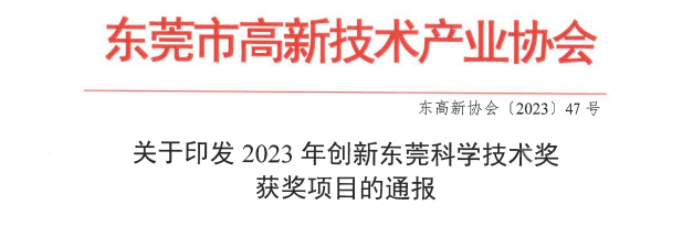 “创新东莞科学技术奖”是由东莞市科技局主导,东莞市高新技术产业协会具体实施,旨在贯彻落实市委、市政府实施创新驱动发展战略、推动高质量发展的工作部署,奖励在科技界作出重要贡献的组织和个人。获奖项目将作为2023年广东省科学技术奖重点推荐,这是我校首次获得该奖项。