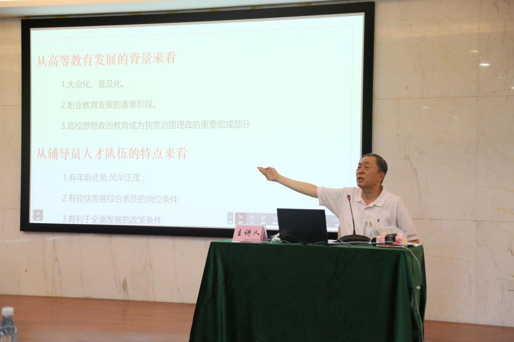 陈岸涛教授首先从现阶段辅导员工作所处的社会大背景、高等教育大背景和辅导员人才队伍的特点三方面出发,剖析了辅导员职业化、专业化的必要性和紧迫性。他勉励辅导员队伍要把握成长机遇、认定成长目标、走专业化道路,要更为注重职业兴趣的培养,找准职业发展目标,提升职业能力,努力成为同学们的知心朋友和人生导师。他指出,辅导员老师要通过长期研究和实践,努力成为思想政治教育、心理健康教育、职业生涯规划和学生事务管理等方面的专家。