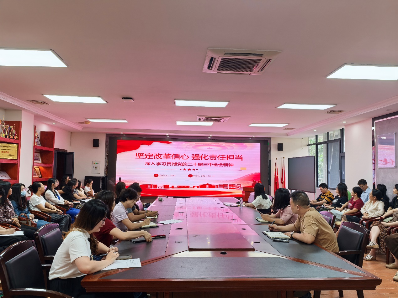 为引导全体教师深入学习和领会党的二十届三中全会精神,10月11日下午,商贸学院院长周虹召开主题为“坚定改革信心 强化责任担当——学习贯彻党的二十届三中全会精神”的专题会议,学院全体教师参加。